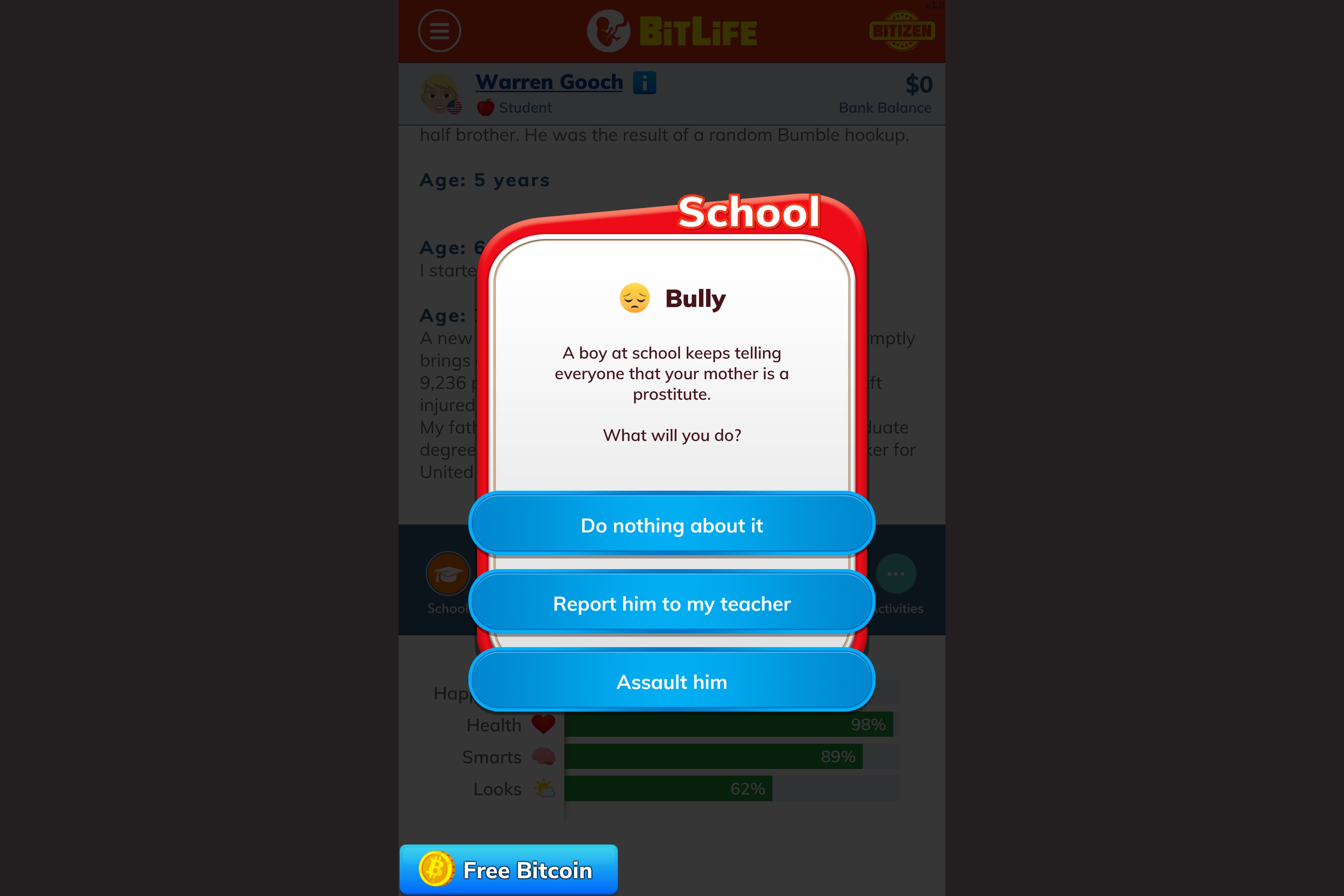 Players can even develop relationships with other players in the form of brothers or sisters. The key to being and staying in tip-top condition lies in the activities you engage in BitLife as in real life. We highly recommend reaching it by the time you reach your late teens.